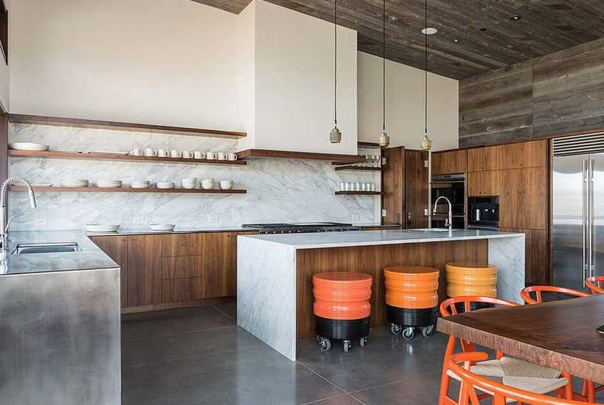 Актуальные дизайнерские решения 2019-2020 при оформлении интерьера с фартуком из мрамора