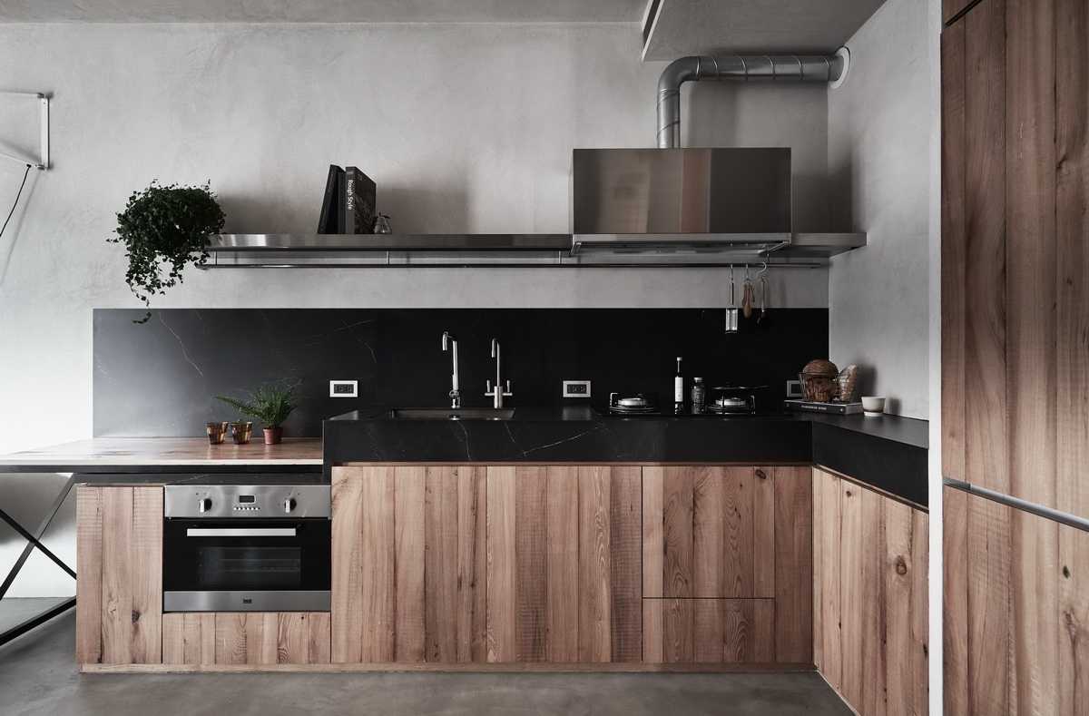 Интерьер в стиле Лофт может включать фартук с имитацией светлого кирпича, контрастную отделку одной стены, креативные осветительные приборы. Внешний вид фасадов может быть разным, главное, чтобы в помещении создавалась атмосфера арт-пространства.
