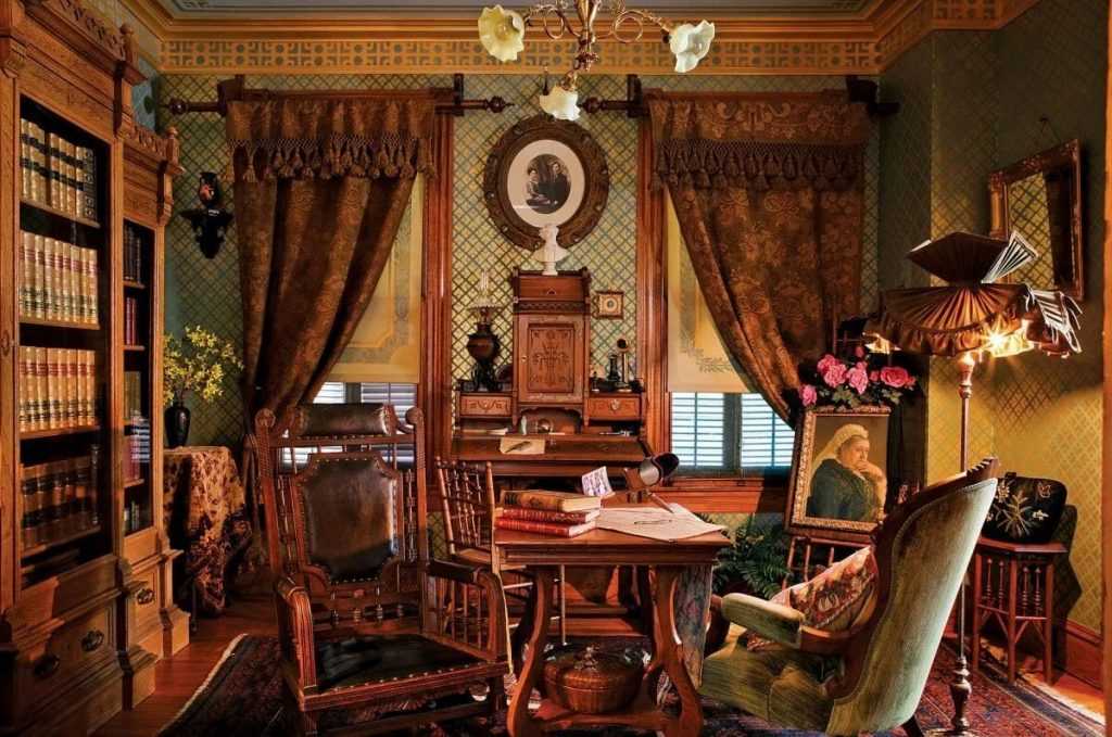 В интерьере в викторианском стиле больше всего выделяются яркие, выразительные цвета, например, зеленый, лиловый, коричневый, а также красный, бордовый, желтый и синий. Каждая комната была выполнена в другом цвете.