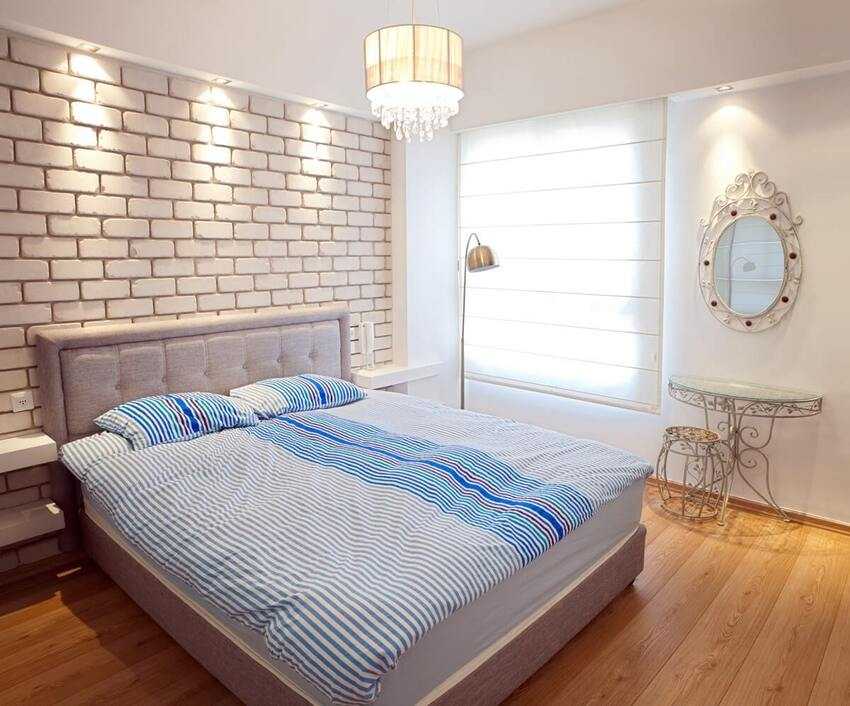 Геометрические фигуры и ломанные узоры неплохо подходят к некоторым современным интерьерам спален, а получить их можно только обоями. Туда же обои с полосками и мелкими текстурами.