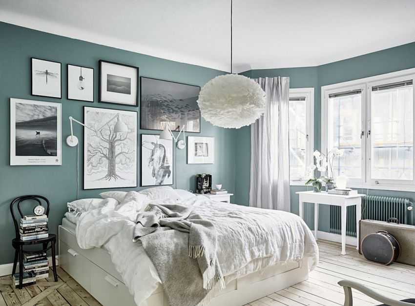 Уютная мятная спальня будет наполнена прохладой в жаркие летние дни.