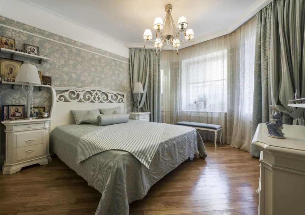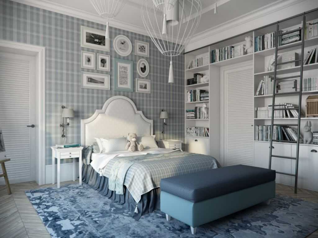 Спальня в серо-голубом цвете