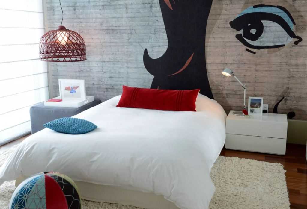 Серую стену спальни для подростка отлично разбавит поп-арт стиль или графити