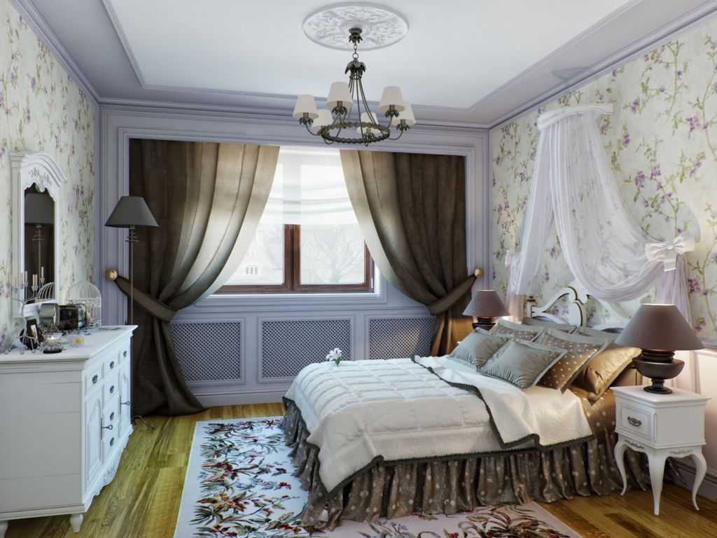В качестве таких элементов могут использоваться подушки в наволочках с кружевами, презентабельные покрывала, раритетные предметы: к примеру, большой старинный комод или объемное зеркало, обрамленное в раму.