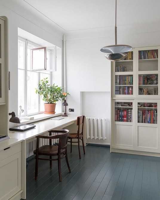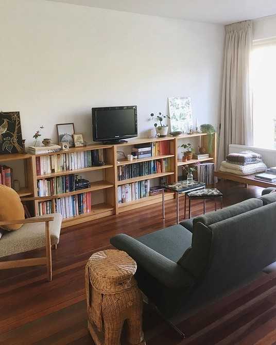 - Книжные полки или стеллажи – важная часть обстановки.