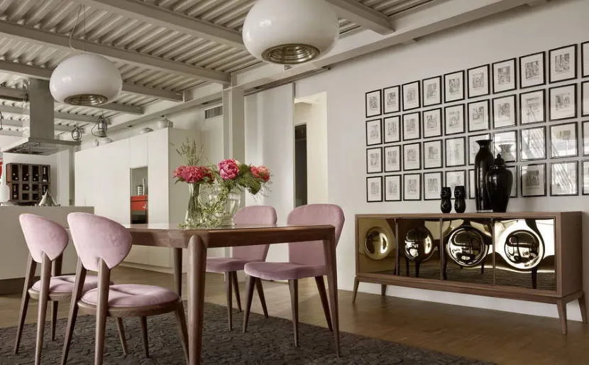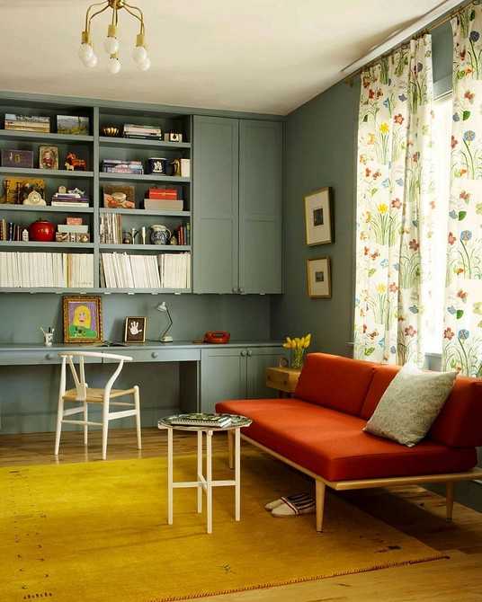 В современных интерьерах принцип цветового акцента сохранен. Оттенки могут не сочетаться, но их не смешивают. В сторону элегантности сместилась цветовая палитра: акцент создают, используя красный, глубокий синий цвет, оттенки мяты, лимона, фуксии.