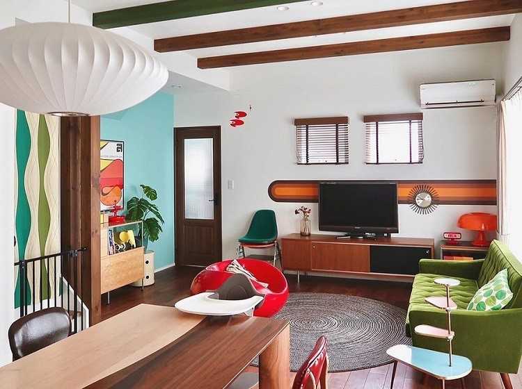 Для того, чтобы воплотить стиль 60-х годов в интерьере современной гостиной или кухни, необходимо помнить об эклектичности стиля. Она выражается в использовании этнических элементов в декоре, выборе жизнерадостной палитры. В современных реалиях стилистика претерпела некоторые изменения.