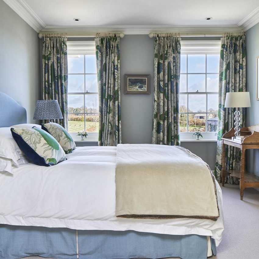 Это оптимальное решение для комнат, располагающихся с северной стороны дома. Помещения, которые большую часть дня наполнены солнечным светом нелишним будет немного «охладить», подобрав ткани сине-голубых или серых тонов.