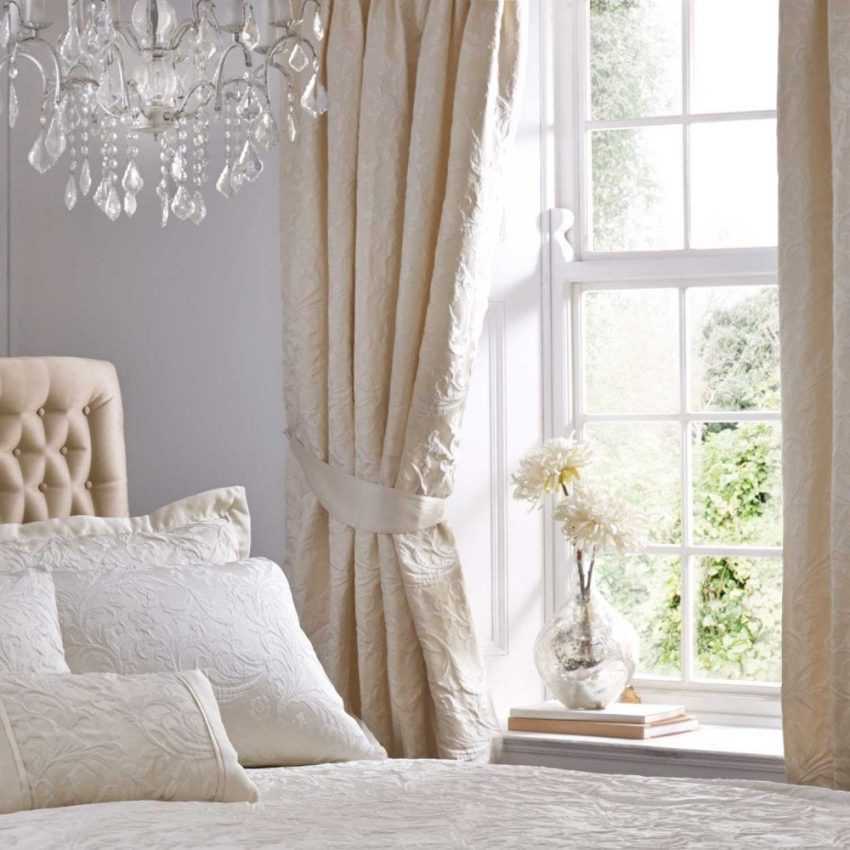 Цвет белый, кремовый, лавандовый, салатовый. Гардины однотонные или с растительным орнаментом.