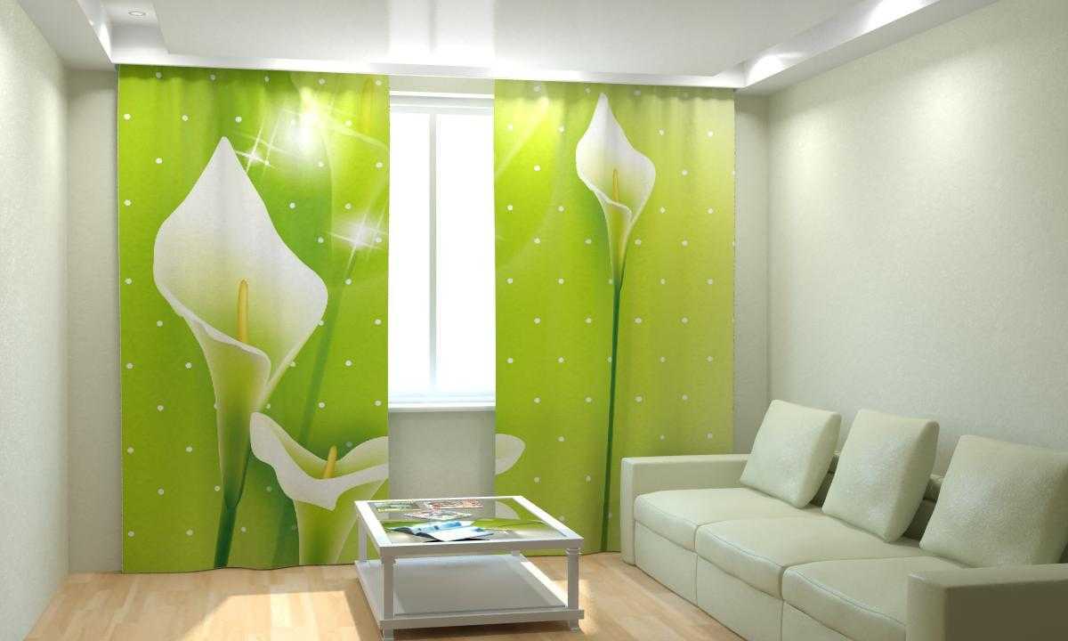 Фотошторы с каллами в интерьере комнаты.