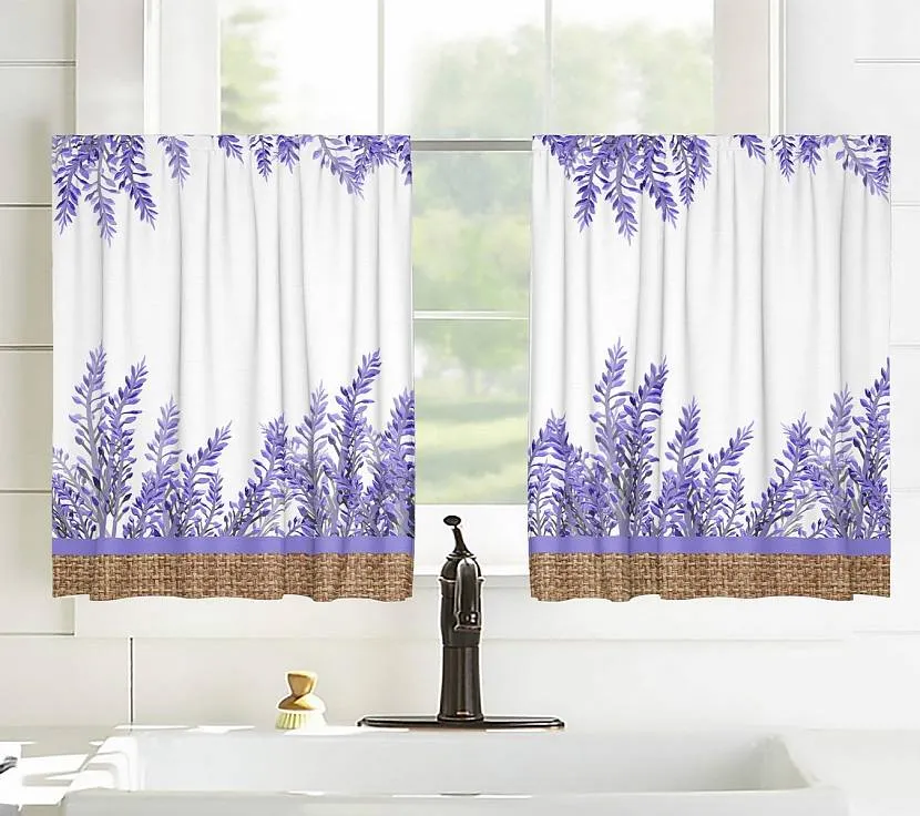 Принт с лавандой может стать частью стиля прованс. Нежные льняные шторы с оборкой подойдут для кухни. Легкая гардина украсит спальню в романтическом стиле.