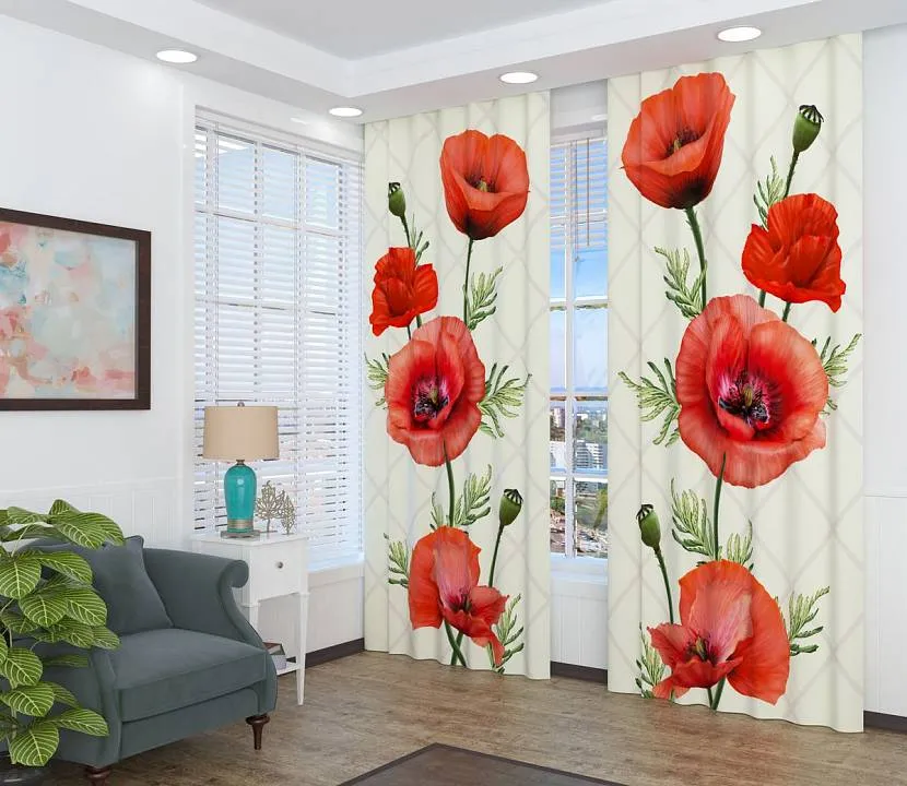 Фотошторы с маками наполняют помещение свежестью.