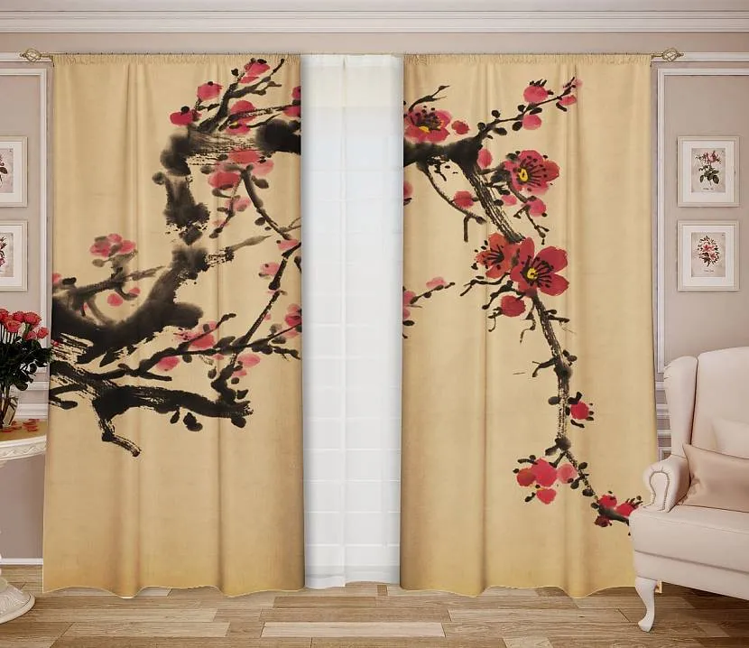 Шторы с сакурой подойдут для восточных интерьеров.