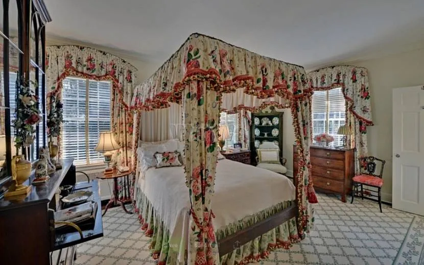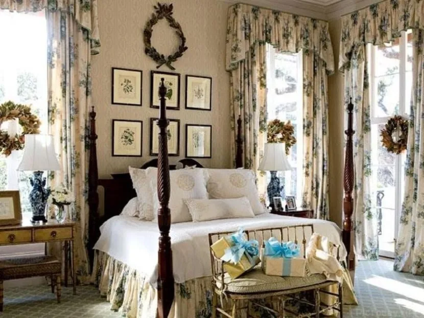 Шторы с цветами в викторианской спальнеИсточник winwal.ru