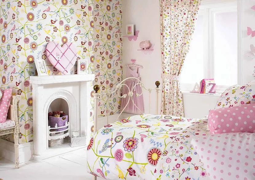 Основной тон для детской подбирают в зависимости от того, кто владелец комнаты — мальчик или девочка. Не подходят для таких помещений шторы с цветами крупных размеров. Лучше подобрать портьеры с россыпью маленьких цветов, словно нарисованных ребенком или выполненных в 3Д-графике. Обои в этом случае должны быть спокойных оттенков.