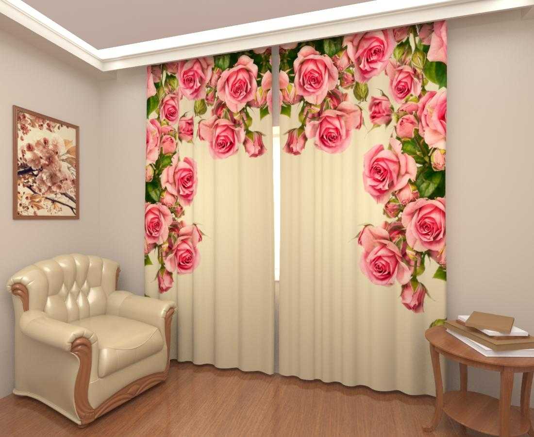 Каждый из этих вариантов имеет свою особенность, свою красоту и свою прелесть. Особенно популярными являются фотошторы, которые отличаются особенной свежестью и натуральностью. На данных гардинах в виде яркой фотографии изображен цветочный принт. Розы могут быть, как и огромные, разделенные на две половины гардины, так и небольшие.