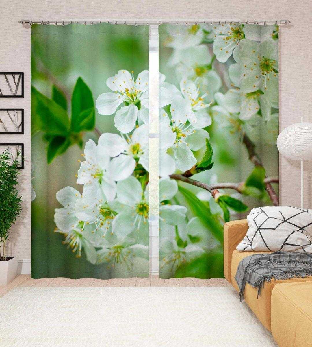 Идеи цветочных принтов на фотошторах