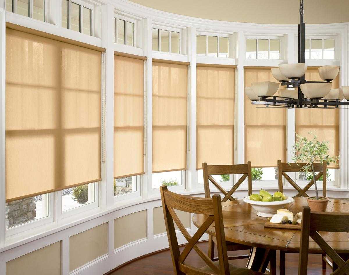 - Римские. Являются наиболее распространенным подъемным видом. Отличаются простотой эксплуатации. Хорошо подходят как для современных стилей интерьера (минимализм), так и для классических. Возможно комбинирование с длинными драпировками, что придаст окну изящества и нарядности.