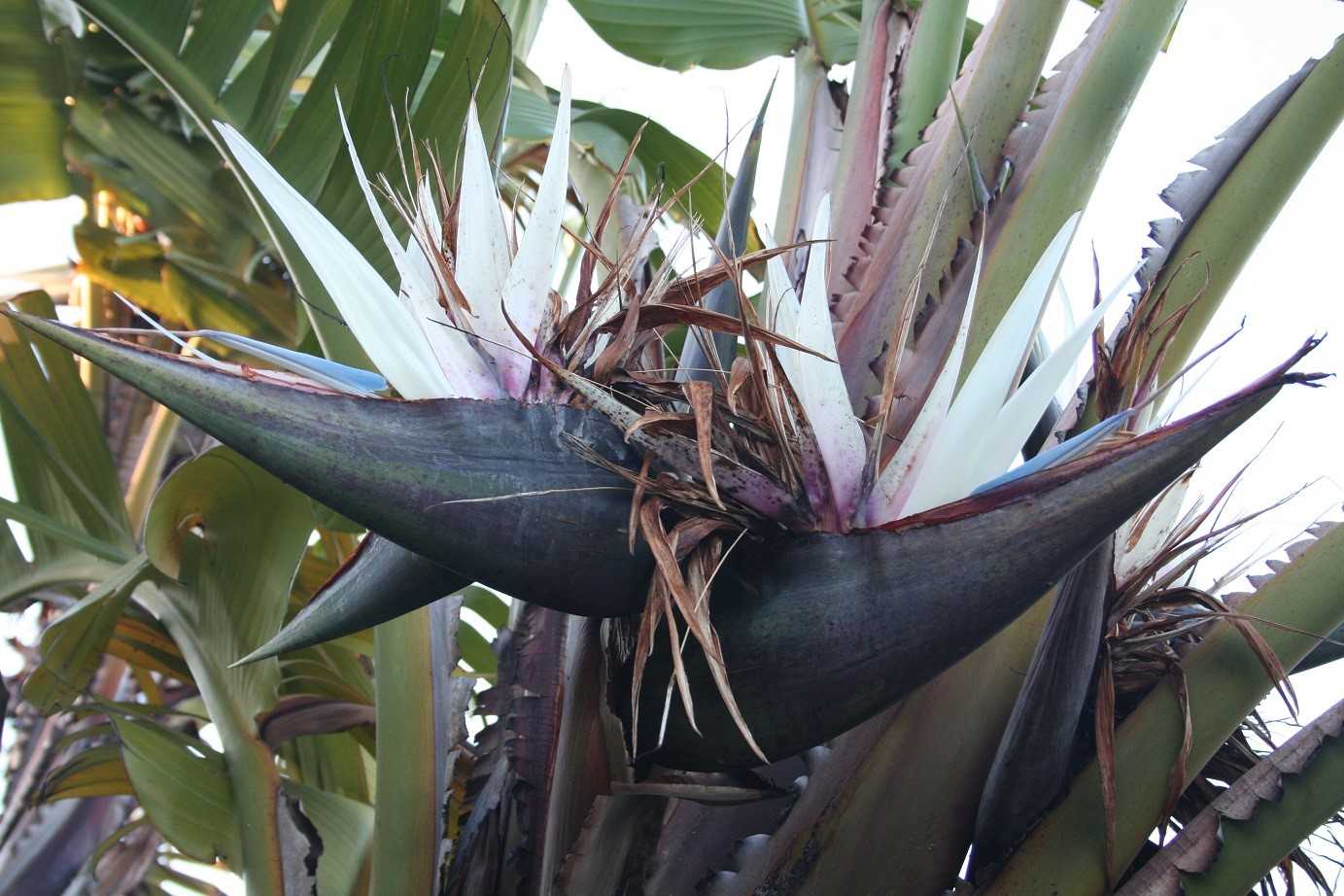 Горная стрелиция — южноафриканская редкость. Отличается длинным стволом, большими белыми бутонами.