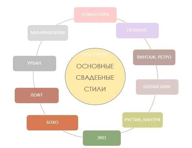 Не забывайте, что цвет также может служить отправной точкой при разработке идеи, ориентированной на другие модные свадебные стили, однако, при выборе какой-то определенной стилистики, важно будет учесть «стилеобразующие» элементы, без которых его просто не удастся полноценно передать