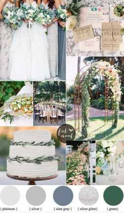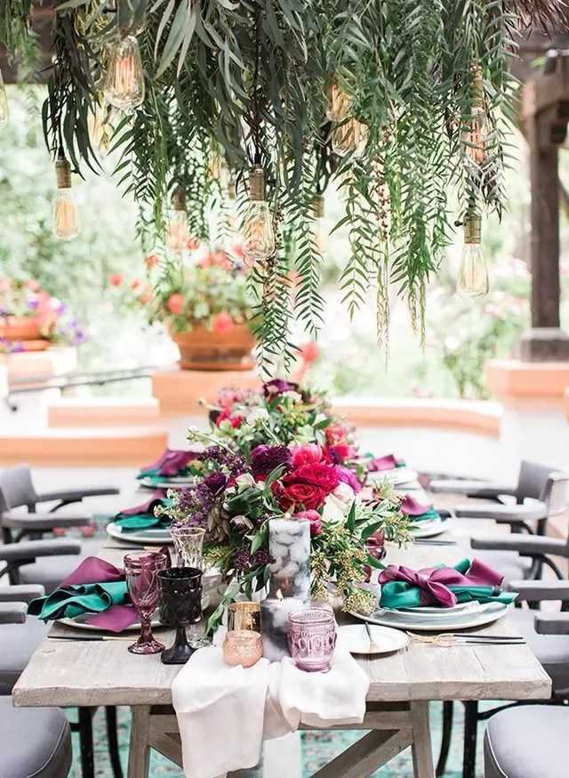 изумрудный также подходит для этой свадьбы, но следует успешный дуэт разбавить пастельными оттенками или добавить белый фон;