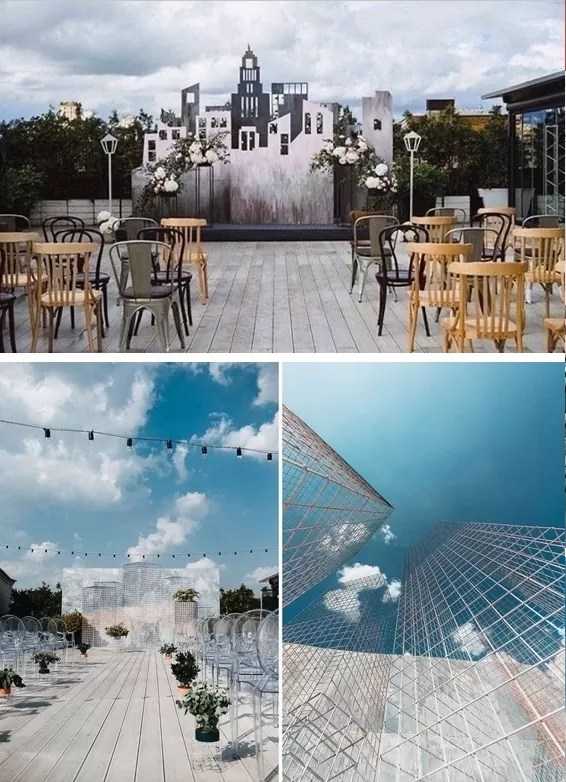 Урбан-свадьба или урбан-шик – общее название для любой городского свадебного торжества. Подразумевает наличие городских пейзажей и интерьеров: высотных зданий, городских трасс, фонтанов, крыш, парковых зон, и т.д., часто в сочетании с небольшими романтическими элементами – подсвечниками, ширмами, гирляндами, прозрачной мебелью.