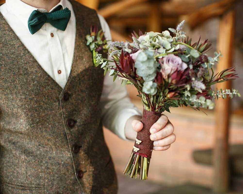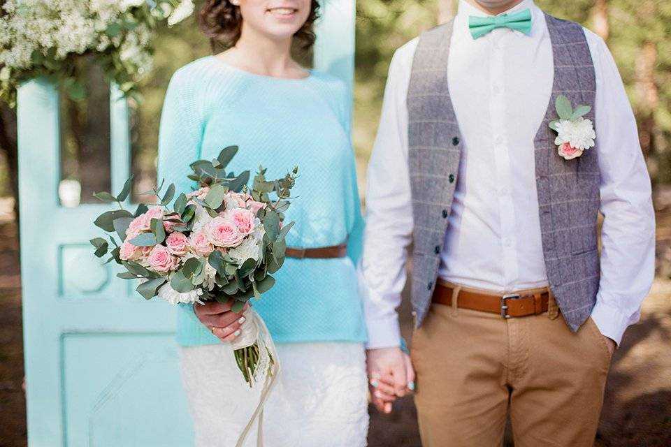 Жених может выбрать как классический костюм, так и просто брюки с рубашкой.