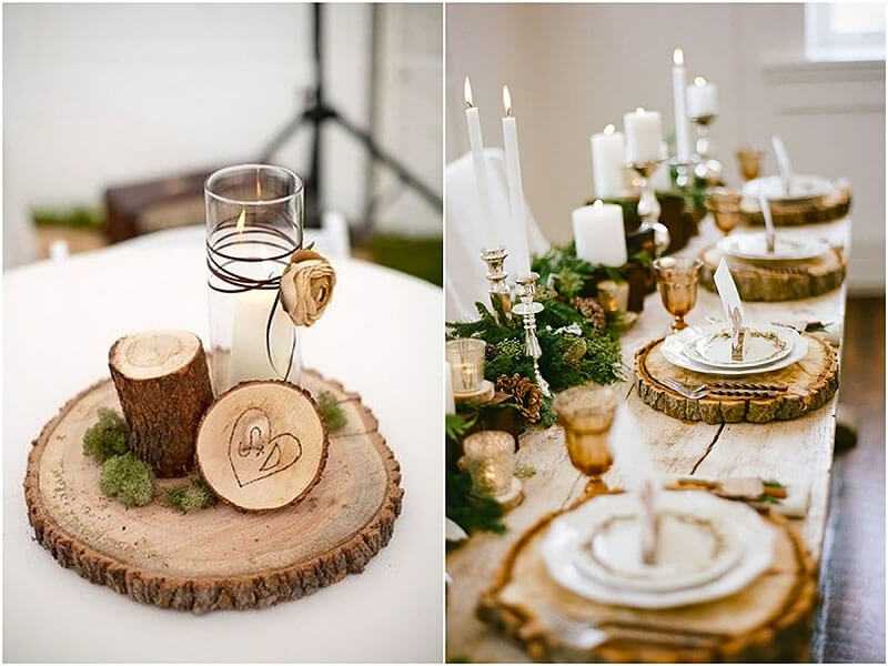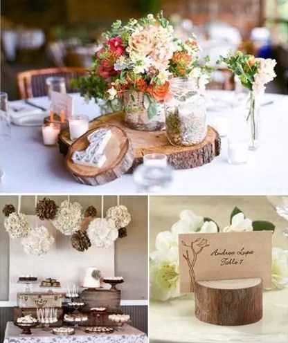 Отличительные особенности декора рустикального стиля: дерево, сено, спилы, зелень, мешковина и множество других природных материалов.