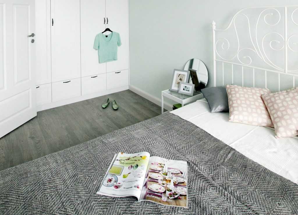 Интересной идеей для дизайна спальни является использование светло-серого в сочетании с терракотовым. Учитывая универсальность цвета, вы можете расставить в спальне и белую мебель. Роскоши добавит немного позолоты. Примеры подобных спален на фото.