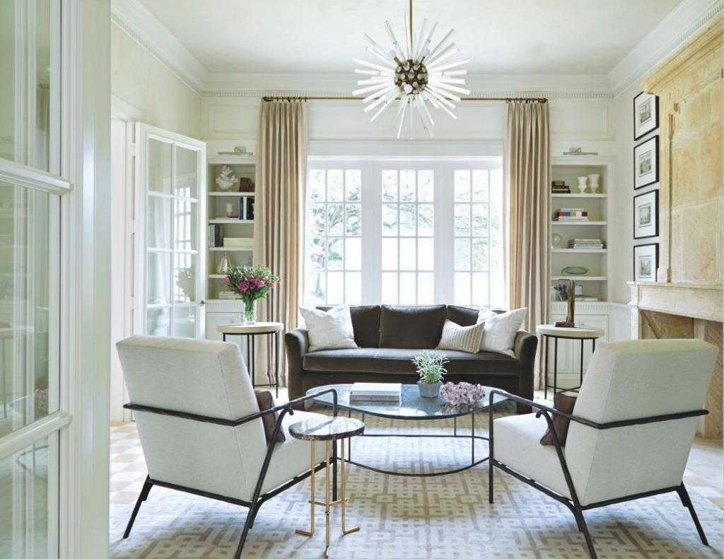 Мебель расставляют со вкусом, но не изобилуют ее наличием. Стараются приобретать только самое необходимое и нужное. Допускается наличие коричневых и серых оттенков. Популярен стиль в Англии.