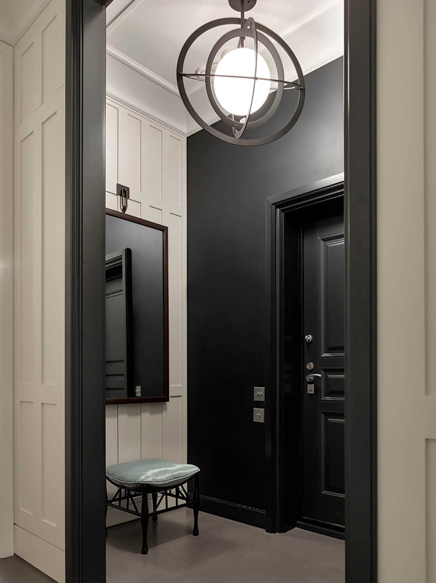 Классический стиль часто ассоциируют с монументальностью и пафосом. На самом деле в элегантном ключе можно оформить даже скромную квартиру с невысокими потолками. Чёрно-белая цветовая схема – отличное решение, чтобы не «съедать» пространство в прихожей: светлые тона (это может быть сливочный, нежно-серый, шампань) дадут визуальный простор, а тёмные – придадут изысканности и солидности.