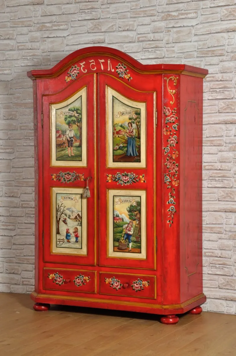 Шкаф , прикладывается к стене, представляет работал ноги, с небольшими красочными цветами для дальнейшей настройки. Деревенские , большие и красочные шторы станут правильным гарниром для окон.