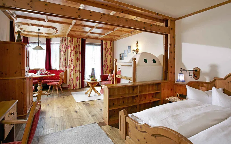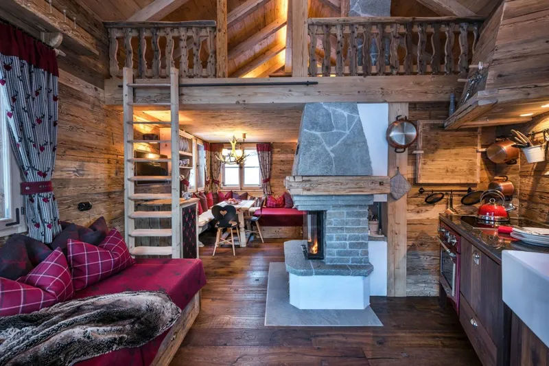 Для тех, кто любит стиль горных хижин , деревенская среда состоит из деревянных элементов, красота которых подчеркивается естественными и светлыми цветами, а прожилки и узлы подчеркивают мастерство мастеров.