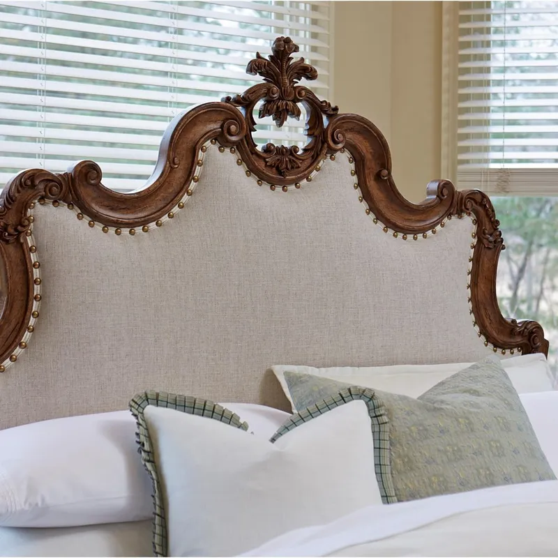 Захватывающим штрихом является наличие большого изголовья за кроватью, которое отличается наличием особых декоративных элементов, а набивка из драгоценной ткани придает очарование с первого взгляда.
