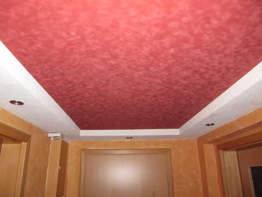 Тканевый натяжной потолок красного цвета