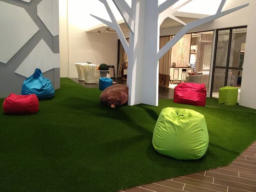 Постелите искусственный газон в детской комнате вместо ковров, тогда дети, играя и падая, не будут набивать себе шишки на локти или колени.