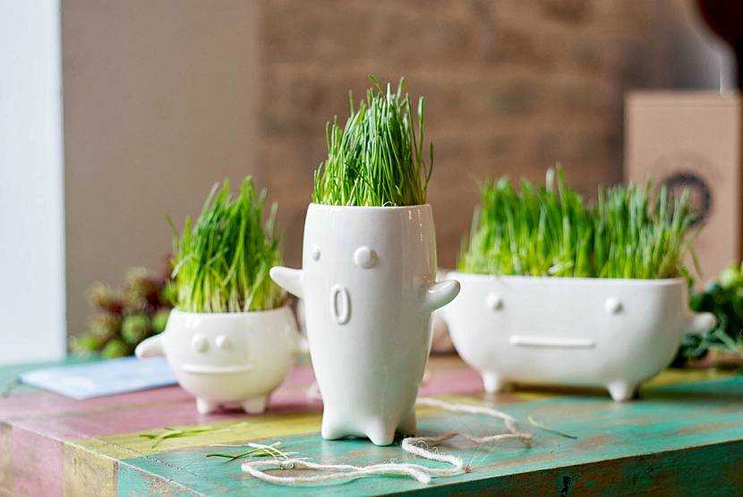 До недавнего времени активно использовалась дизайнерами живая трава в горшке – для декора подоконников, она подходила больше всего. Можно было увидеть ёмкости с зеленью, расставленные на открытых полках на кухне, на стенах в кашпо в гостиных. Она помогала создавать уголки природы внутри жилого пространства, которые благотворно влияли на психику человека, помогали ему расслабиться и почувствовать единение с окружающим миром.