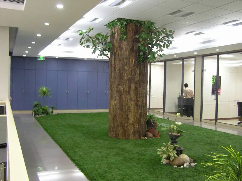 Идеально подходит ярко-зелёная декоративная трава для интерьера ванной комнаты. Там она способна украсить не только пол, но и стены, и даже потолок.