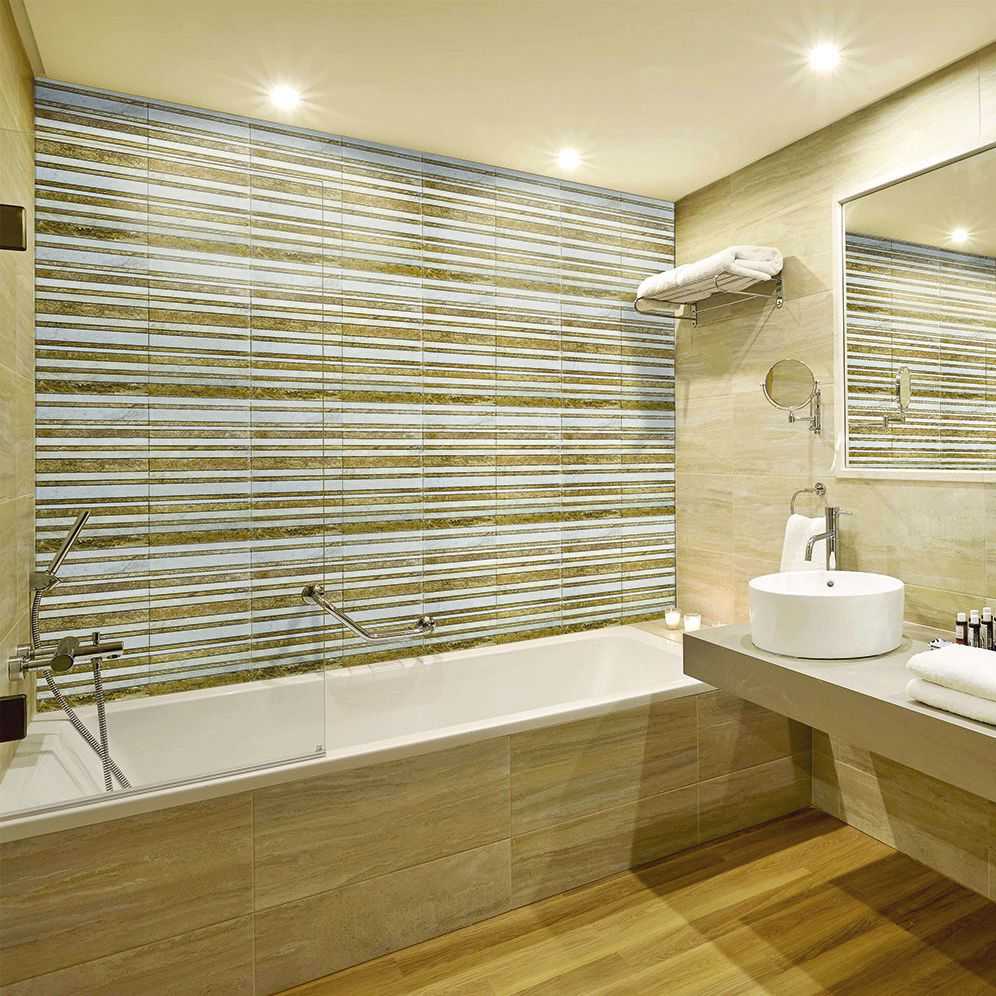 - Травертиновая плитка — популярный выбор для отделки ванной комнаты. Положенная на пол, стены, душевую кабину, она придаст ванной утонченный вид.