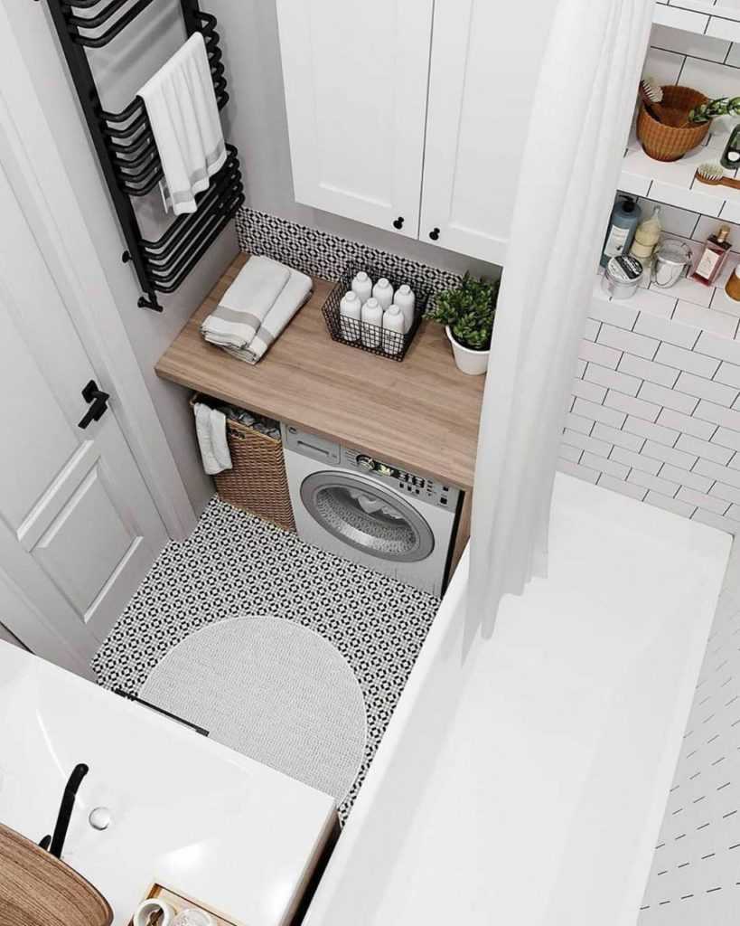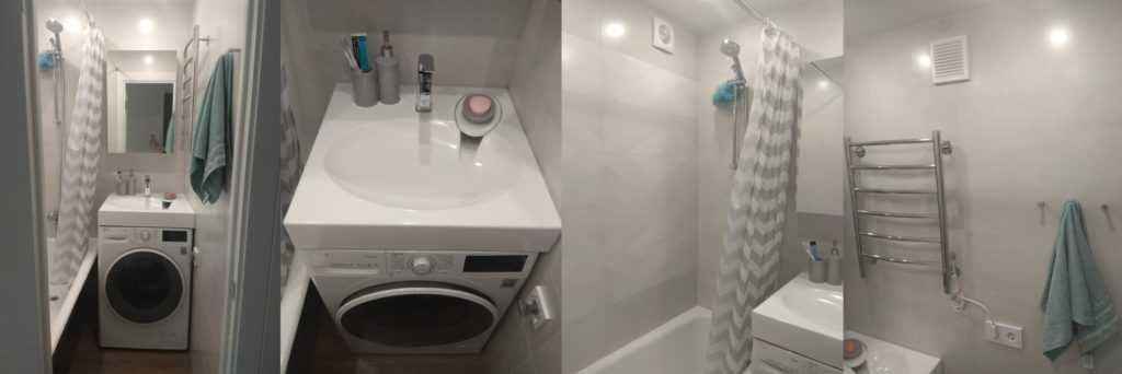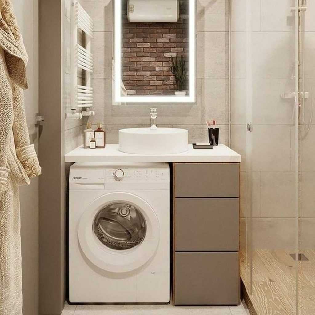 Этот способ дизайна ванной комнаты в квартире-хрущевке со стиральной машиной — скорее, экстремальный, чем общепринятый, но вполне осуществимый при правильном подходе