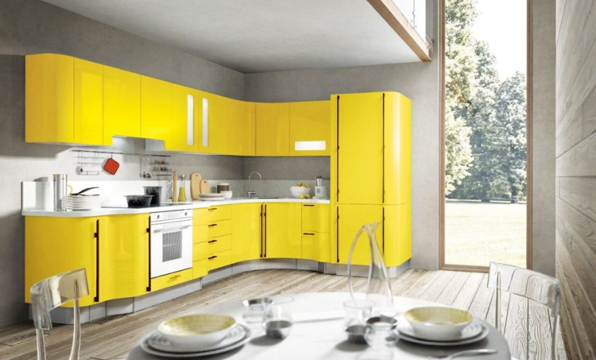 Желтая кухня избавит от плохого настроения, особенно при затяжных осадках и пасмурной погоде. Этот цвет является жизнерадостным и энергичным, поэтому восполняет дефицит естественного солнечного света. Золотистые оттенки наполнят пространство теплом.