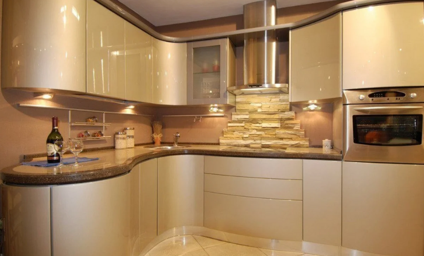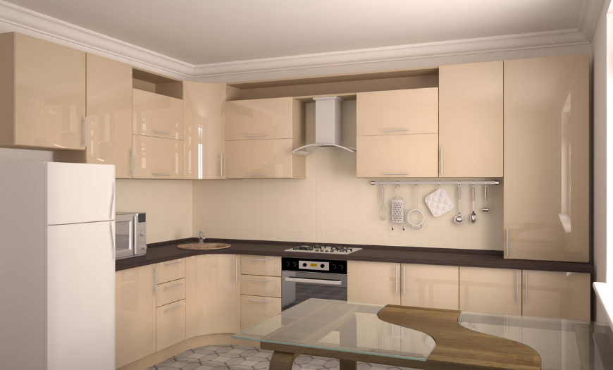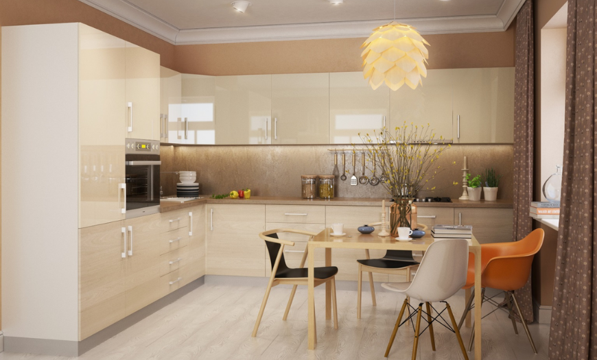 Помещение кухни подвергается воздействию влаги и испарений при приготовлении пищи, поэтому следует подбирать мебель из качественных материалов.