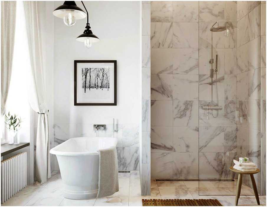 Оформление ванной комнаты с помощью мраморной плитки