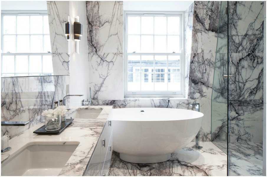 Мрамор в интерьере ванной комнаты