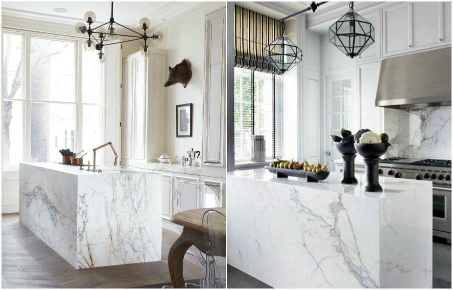 Мрамор в интерьере кухни