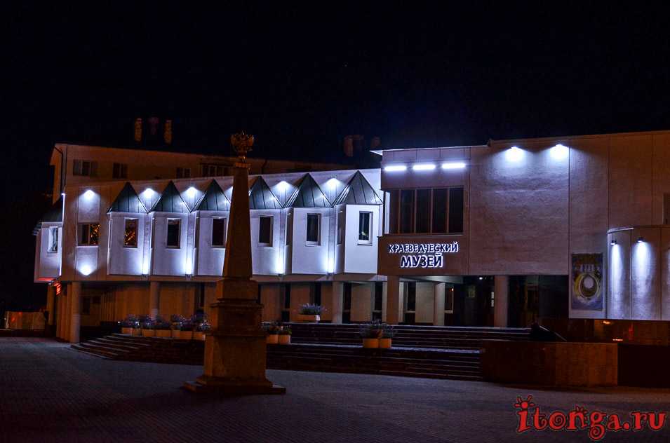Белгород ночью позволяет рассмотреть свои достопримечательности в интересном ракурсе. Например, одной из таких достопримечательностей является Музей-диорама «Курская дуга. Белгородское направление».