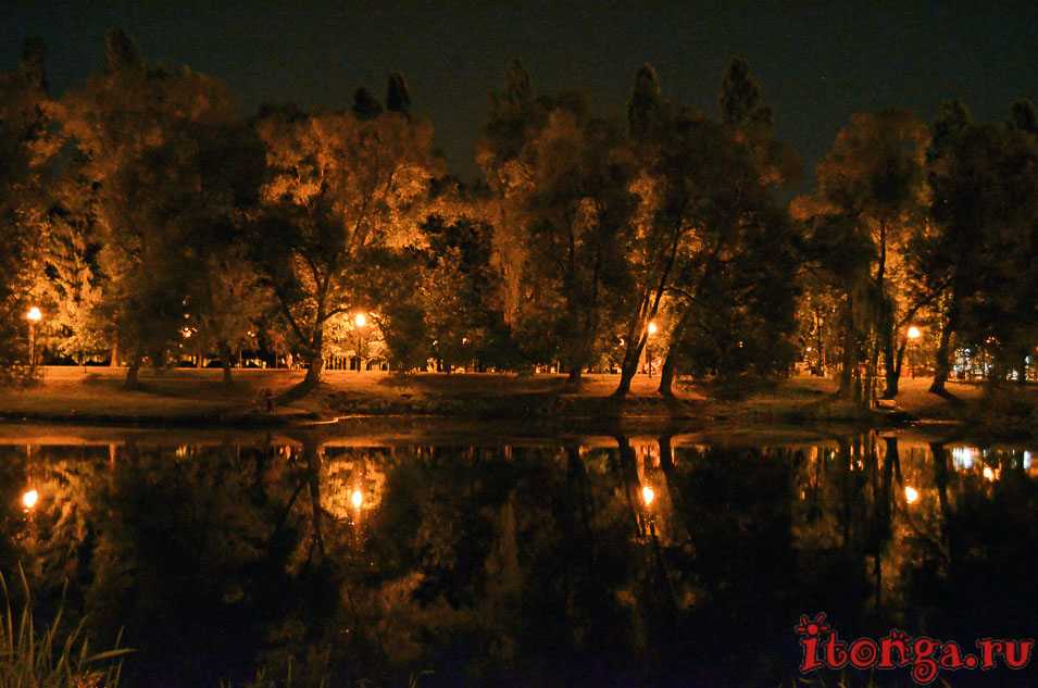 Потом моя ночная прогулка продолжилась по парку Победы. Он расположен на берегу реки Везелка.