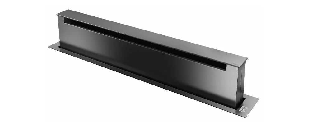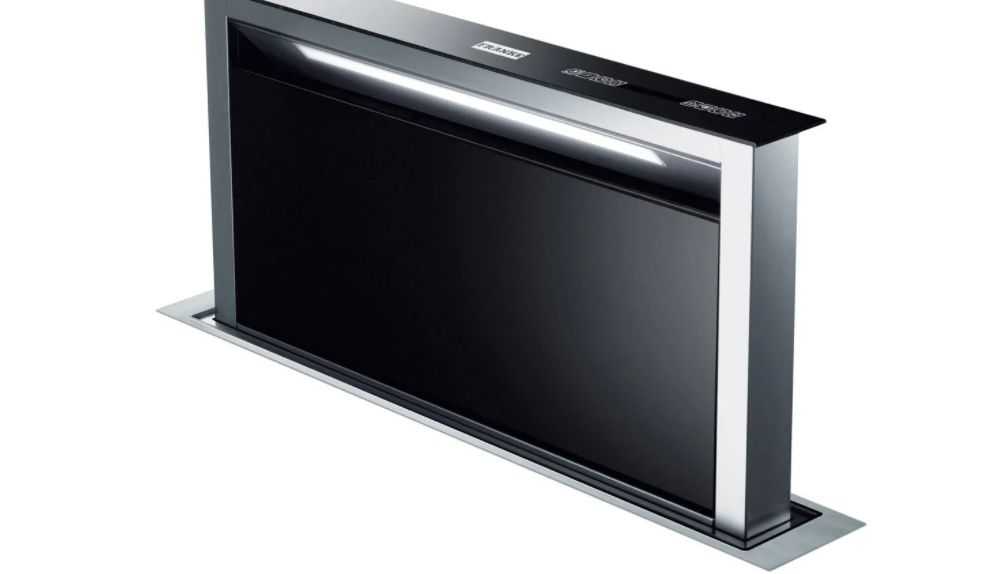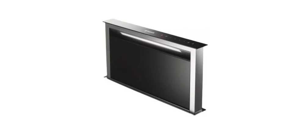 Продолжает наш рейтинг кухонная вытяжка, встраиваемая в столешницу, Faber FABULA EVO+BK — модель, выполненная из стекла и долговечной нержавеющей стали. Модель отличается простотой монтажа, бесшумной работой и экономным использованием энергоресурсов. Управление всеми процессами, смена скоростей, режимов и функций происходит быстро и легко при помощи сенсорного управления.
