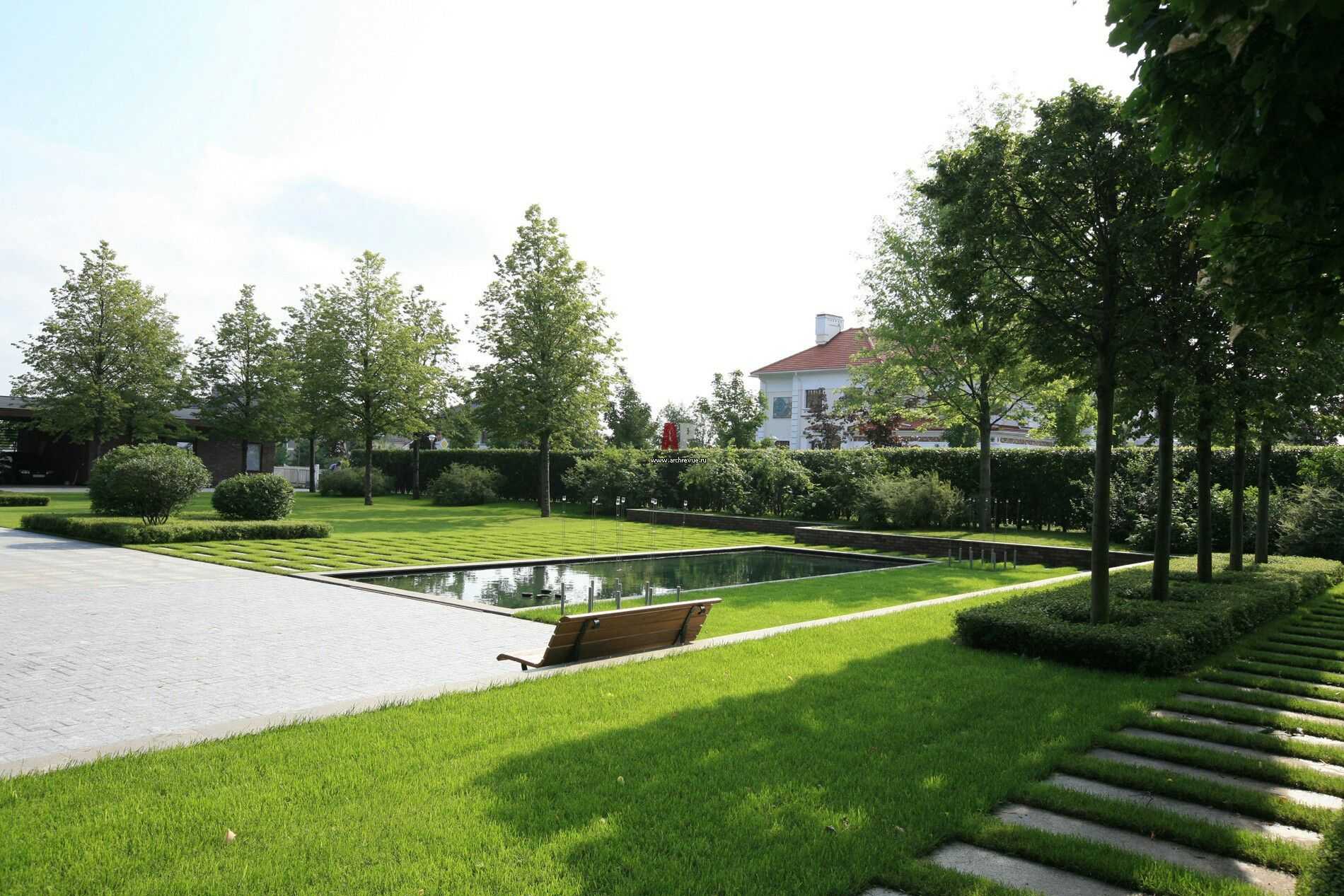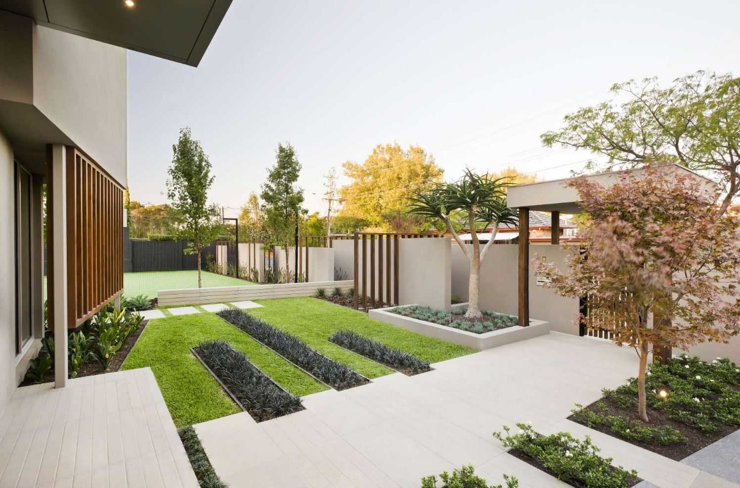 - . Когда-то в представлениях модернизма дом и пространство вокруг него именовалось «машиной для жилья». Это представление не утратило актуальности; в таком саду хорошо смотрится бассейн, спортивная площадка или теннисный корт. Их стараются расположить на видном месте, зачастую рядом с жильем.