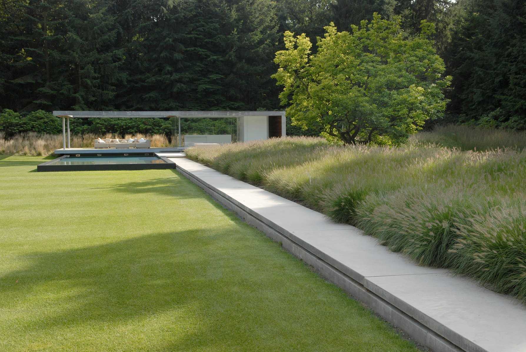 - Четкие геометрические линии — для ландшафта в стиле минимализм характерны правильные прямые линии, создающие эффект психологической устойчивости, чистоты, опрятности. В оформлении используются преимущественно горизонтальные, вертикальные, диагональные направления.